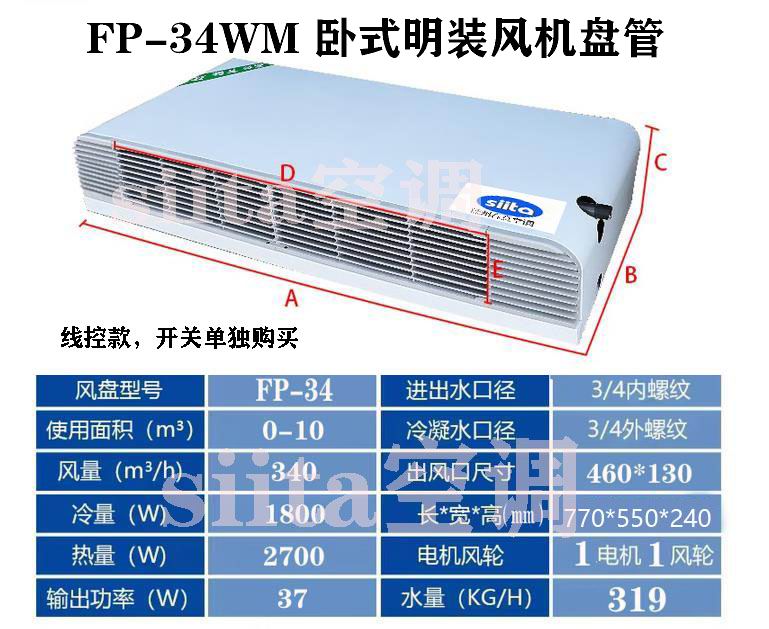 德州春意FP-34WA臥式明裝風機盤管核心性能參數(shù)