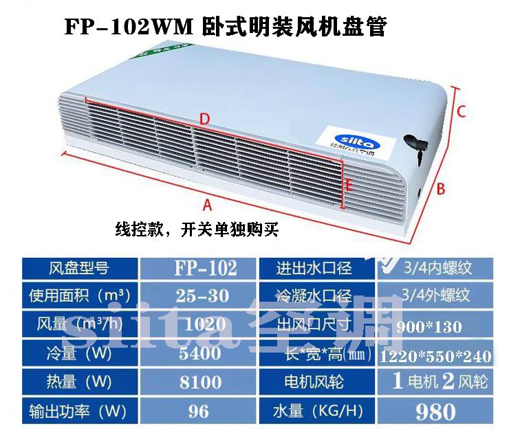 FP-102WM 是中央空調(diào)中適配中大面積空間的臥式明裝風(fēng)機(jī)盤管,額外風(fēng)量 1020m3/h,主打大風(fēng)量、高換熱效率,適配 25-30㎡空間,無需吊頂可直接吊裝,機(jī)身規(guī)劃統(tǒng)籌實(shí)用性與裝飾適配性,是住所大空間、中小型工作 / 商業(yè)區(qū)域的主力選型,統(tǒng)籌溫控精準(zhǔn)度與裝置方便性。